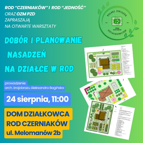 Działkowców i instruktorów ogrodowych SSI zapraszamy na otwarte zajęcia szkoleniowe organizowane wspólnie przez ROD „Czerniaków” i ROD „Jedność” przy wsparciu Okręgowego Zarządu Mazowieckiego PZD